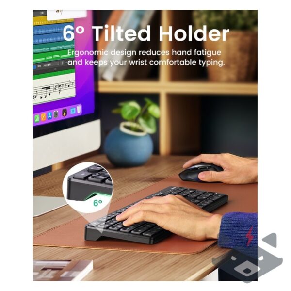 - Клавиатурата е с оптимален ъгъл на наклон, който осигурява ергономична позиция на ръцете и китките при писане.